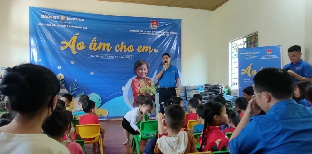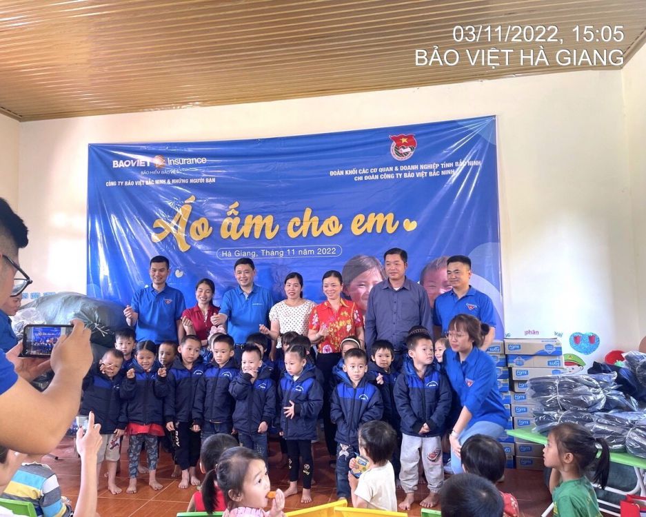 Với định hướng hỗ trợ cho giáo dục, cũng như góp phần tiếp thêm nguồn sức mạnh tinh thần đến với các em học sinh. Chiều ngày 03/11/2022. Các cháu học sinh Điểm trường: Lâm Trường, trường MN Vô Điếm. Rất vui mừng đón nhận sự quan tâm, chia sẻ của chú: Đặng Đình Tuấn (Bí thư Chi bộ - Giám đốc công ty Bảo Việt tỉnh Bắc Ninh) cùng các cô, chú đoàn viên thanh niên công ty Bảo Việt tỉnh Bắc Ninh. Với những món quà vô cùng ý nghĩa và thiết thực trong mùa đông giá lạnh. 80 xuất áo ấm, tất và 30 thùng sữa đã được trao tận tay cho các cháu học sinh điểm Lâm trường. Đến dự với chương trình " Áo ấm cho em" còn có sự tham gia của chú: Đặng Văn Đồng (PCT xã) Chú Khuê và cô Vân (công ty Bảo Việt huyện Bắc Quang)