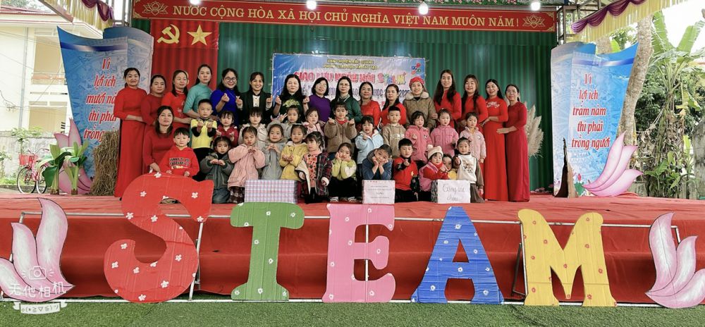 Buổi giao lưu Ngày hội STEAM giữa 3 trường Mầm non Liên Hiệp, MN Vô Điếm và MN Bằng Hành với chủ đề: Năng lượng tái tạo đã mang đến cho các bé một sân chơi bổ ích, sáng tạo và đầy hứng thú. Không chỉ giúp trẻ hiểu về việc tái chế rác thải mà còn kích thích tư duy sáng tạo, khả năng hợp tác nhóm và kỹ năng giải quyết vấn đề. Qua hoạt động trình diễn các bộ trang phục được thiết kế tái chế từ rác thải giúp trẻ hình thành ý thức bảo vệ môi trường ngay từ nhỏ.