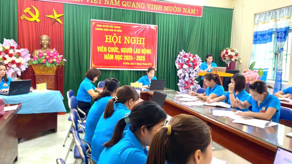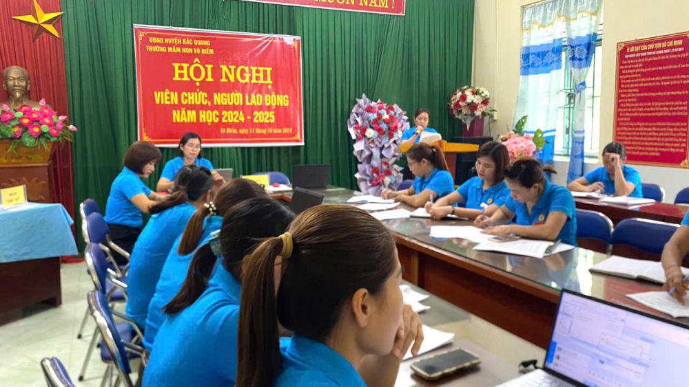 Chiều ngày 11/10/2024, trường Mầm non Vô Điếm đã tổ chức thành công Hội nghị viên chức, người lao động năm học 2024-2025. Đây là một sự kiện quan trọng đánh dấu sự khởi đầu cho năm học mới với tinh thần đoàn kết, trách nhiệm và sự đổi mới trong công tác giáo dục mầm non.